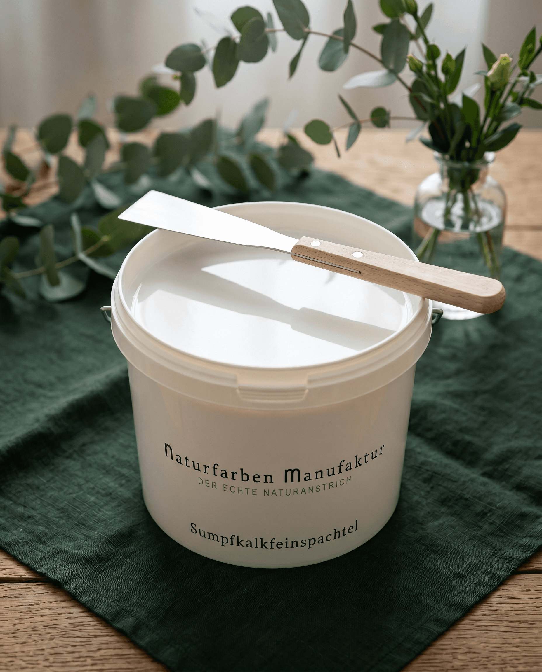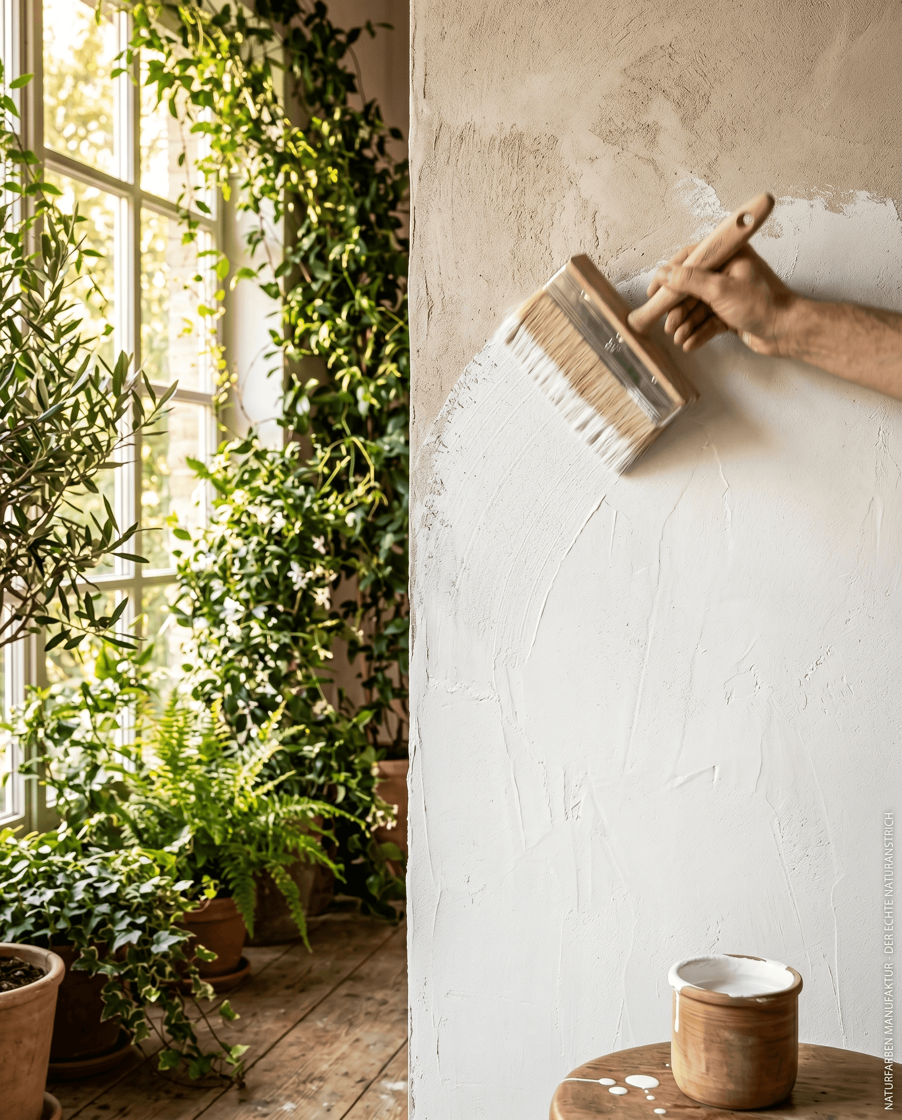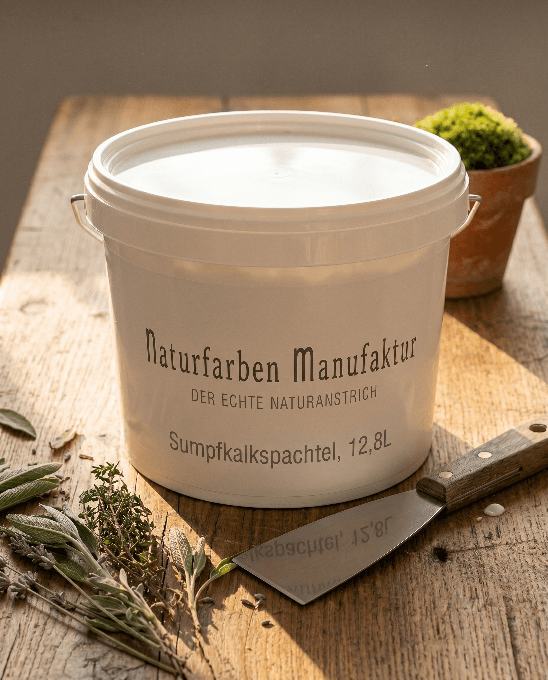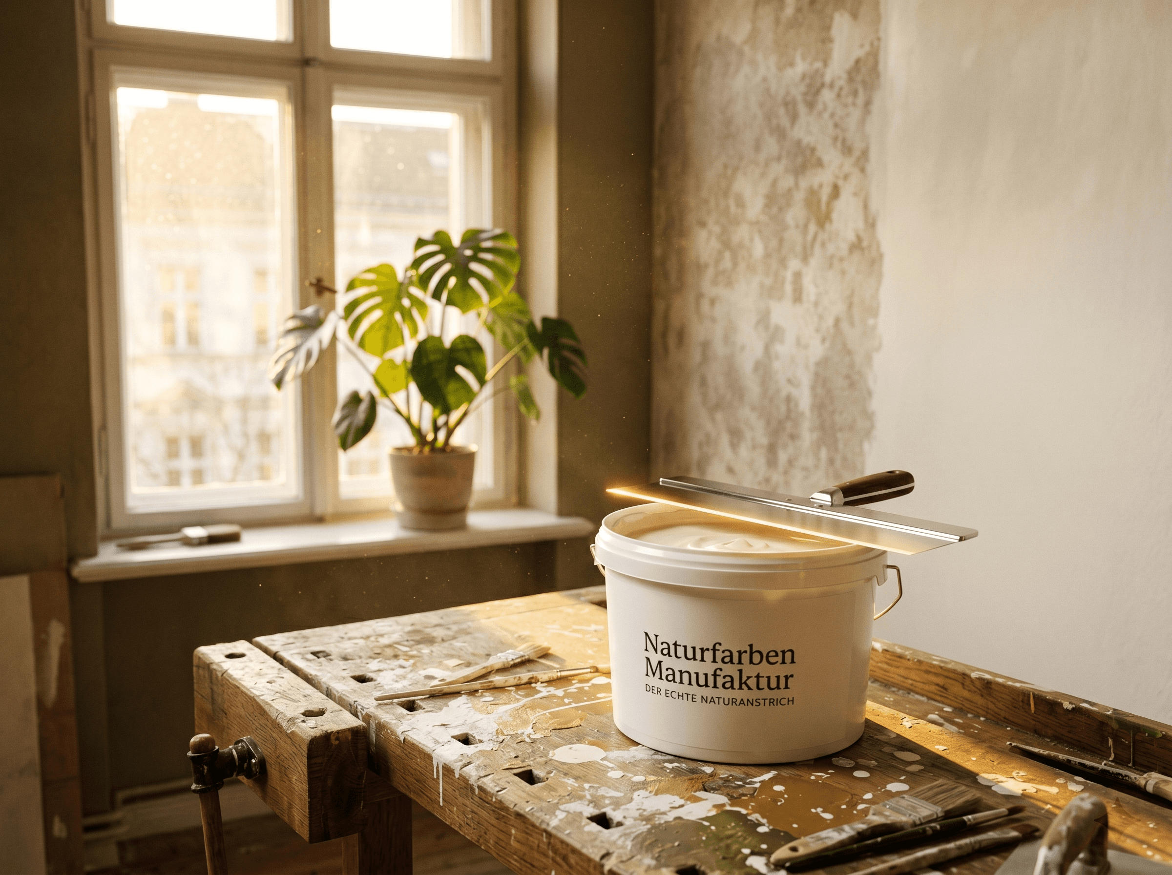 Schimmelhemmend, geruchsfrei, hohe Deckkraft. Unsere Kalkfarbe aus min. 3 Jahre abgelagertem Sumpfkalk — für atmungsaktive Wände.