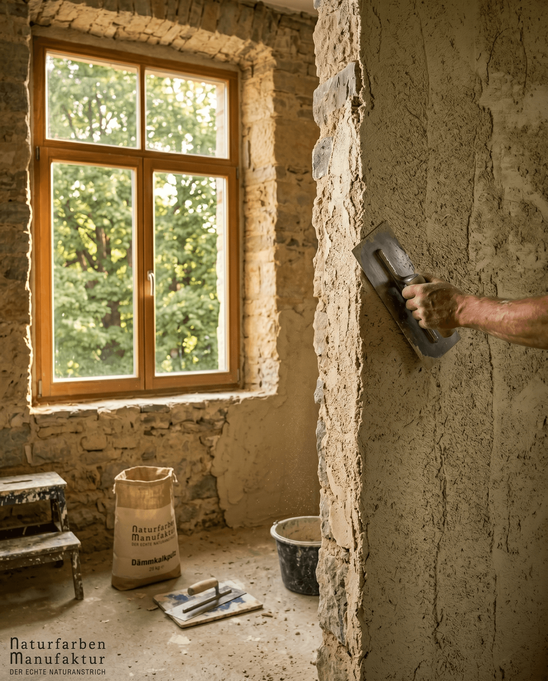 Kalte Wände, Wärmeverlust, Schimmelgefahr. Unser Dämmkalkputz dämmt natürlich und bleibt diffusionsoffen — für Innen und Außen verwendbar.